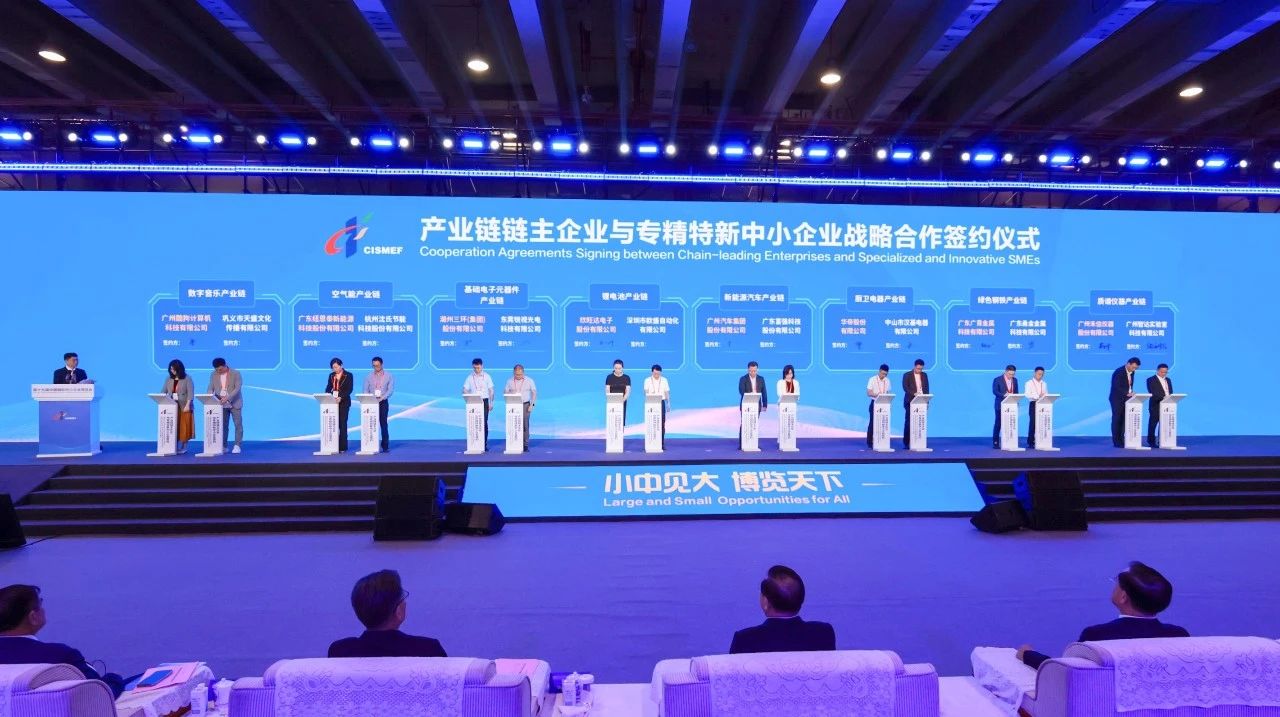 大會開幕式上,啟動了“一月一鏈”中小企業融資促進全國行活動,發布了《中小企業數字化賦能專項行動方案(2025—2027)》和2024年度大企業技術創新需求榜單,組織47家產業鏈鏈主企業與專精特新中小企業簽署合作協議,意向采購金額達近千億元。